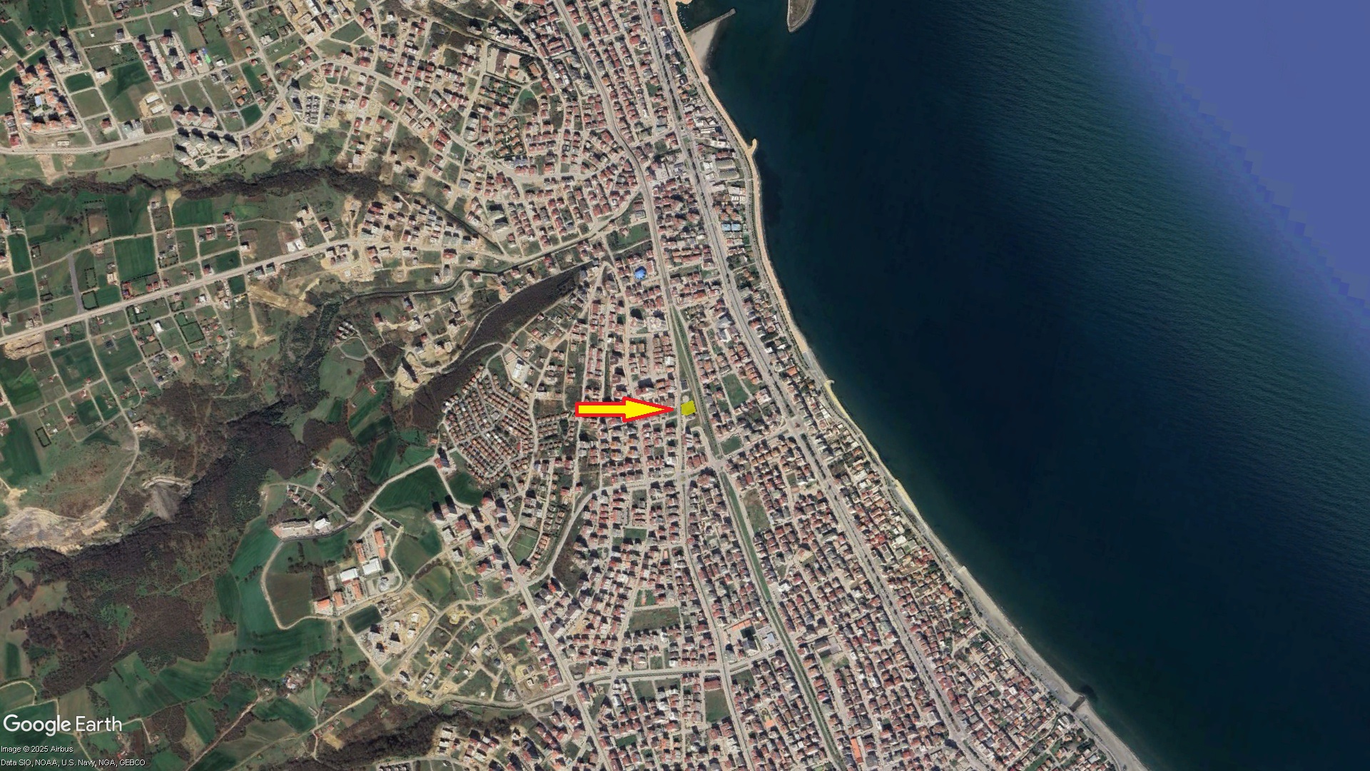 تقع الأرض في موقع متميز ضمن ولاية طرابزون، تبعد عن مطار طرابزون الدولي 12 كم، كما أنها بالقرب من ساحل البحر الأسود والميناء التجاري. بالإضافة إلى أنها بجانب الشارع الحكومي.